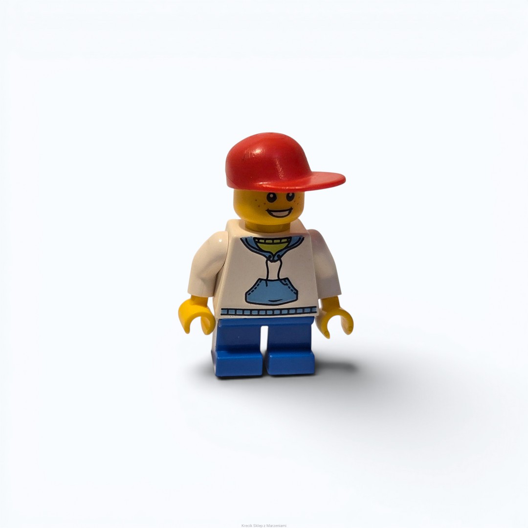 Figurka LEGO cty0192 Child - Boy, White Hoodie with Medium Blue Pocket, Blue Short Legs, Red Cap, Freckles [Town : City] | minifigurka ludzik