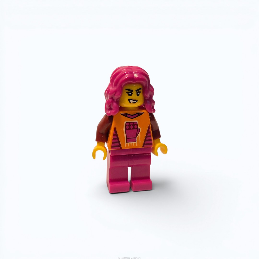 Figurka LEGO cty1540 Gaming Tournament Participant - Female, Orange T-Shirt with Fist, Magenta Legs, Magenta Hair [Town : City : Traffic] | minifigurka ludzik