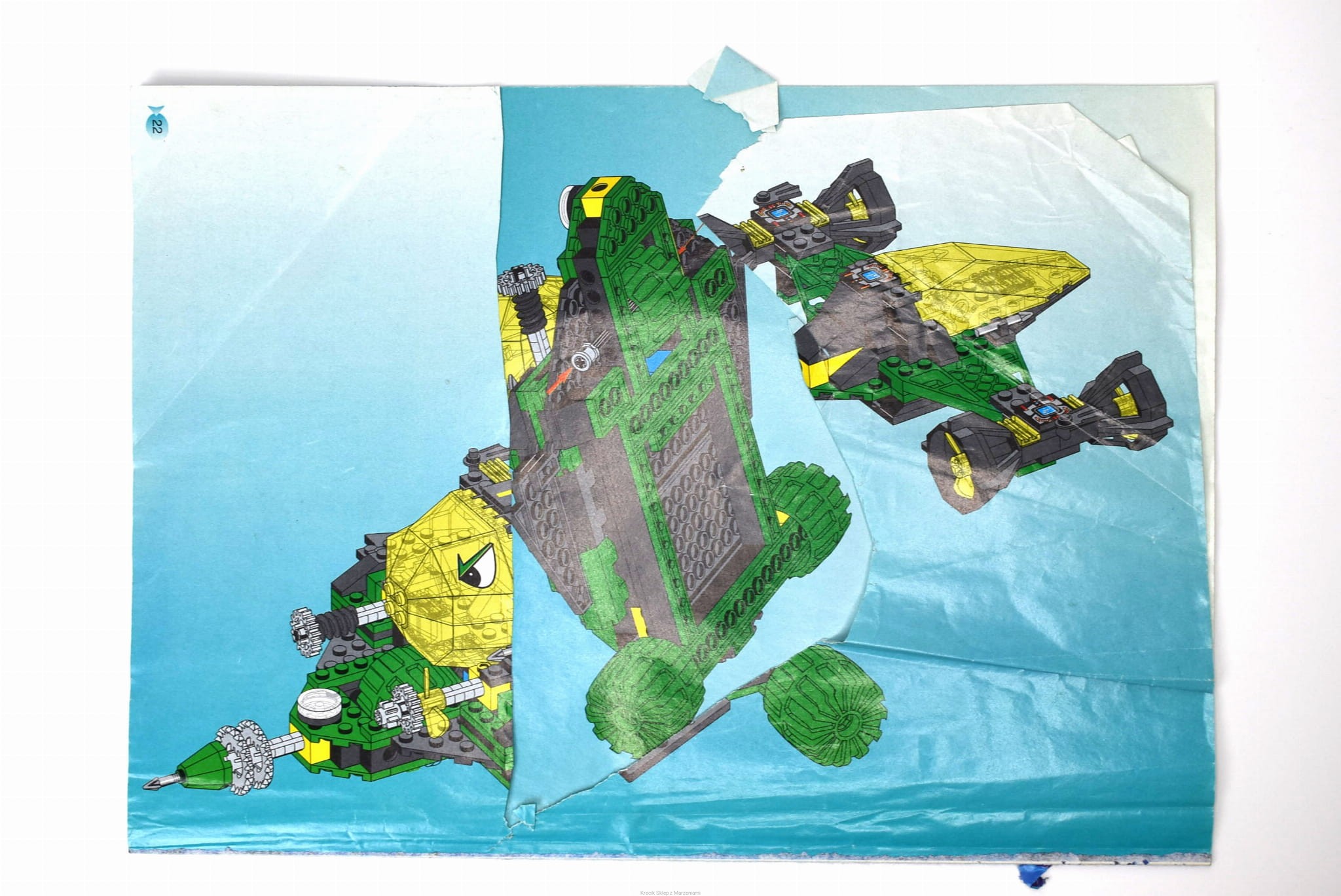 Stan instrukcji: niekompletna, pozbawiona w praktyce pierwszej i ostatniej strony (wycięcia), niestety są tam też etapy budowania (pełna instrukcja do znalezienia w sieci), poza tym środek w dobrym stanie