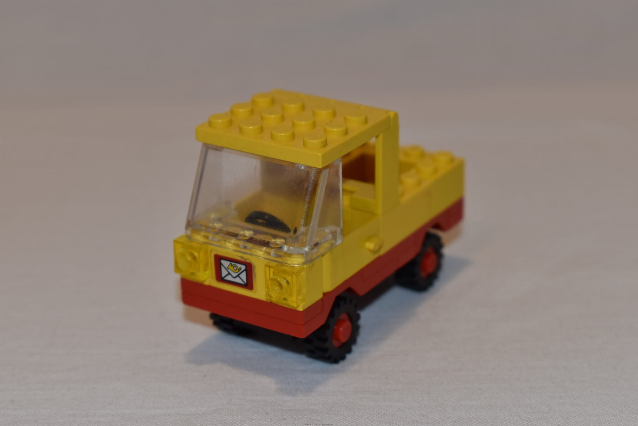 Stan klocków: Używane i bawione, ze śladami ząbków, drobne ryski, mogą być zakurzone, niektóre klocki są mocniej pożółkłe, jest naklejka na froncie auta i drzwiach (unikat!), brak pozostałych naklejek.