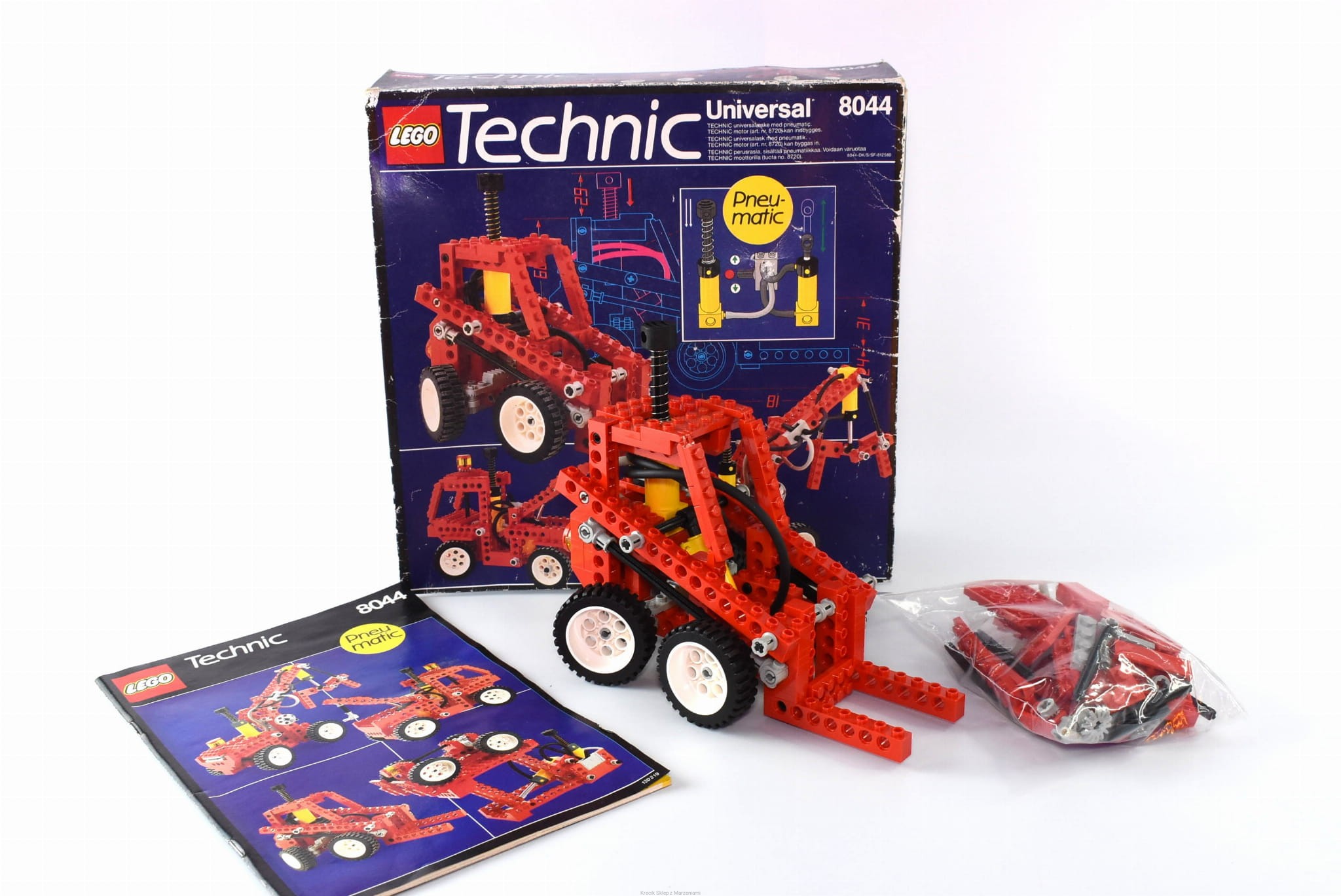 LEGO 8044 Universal Pneumatic Set [Technic: Universal Building Set] z instrukcją i pudełkiem | wózek widłowy podnośnik holownik