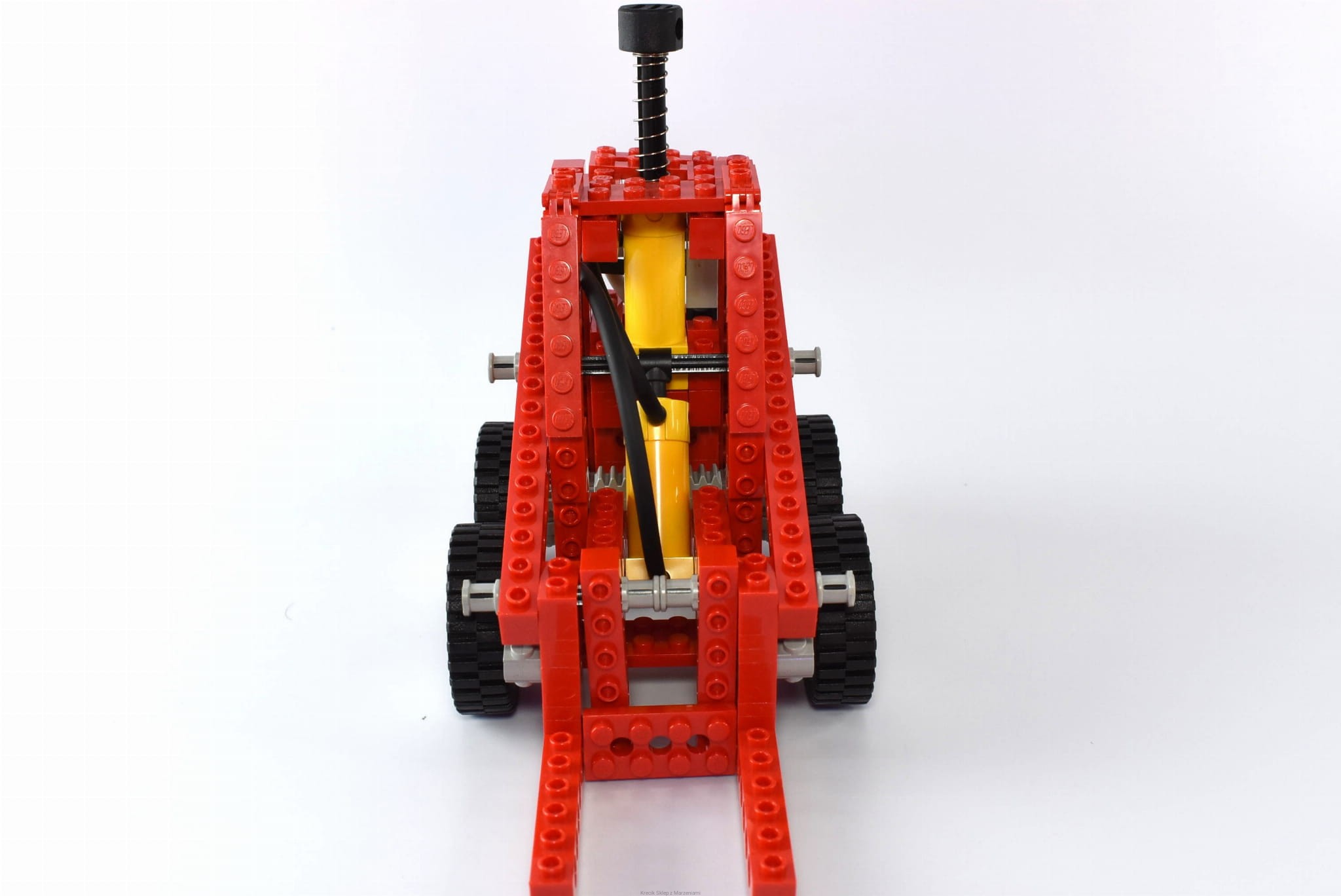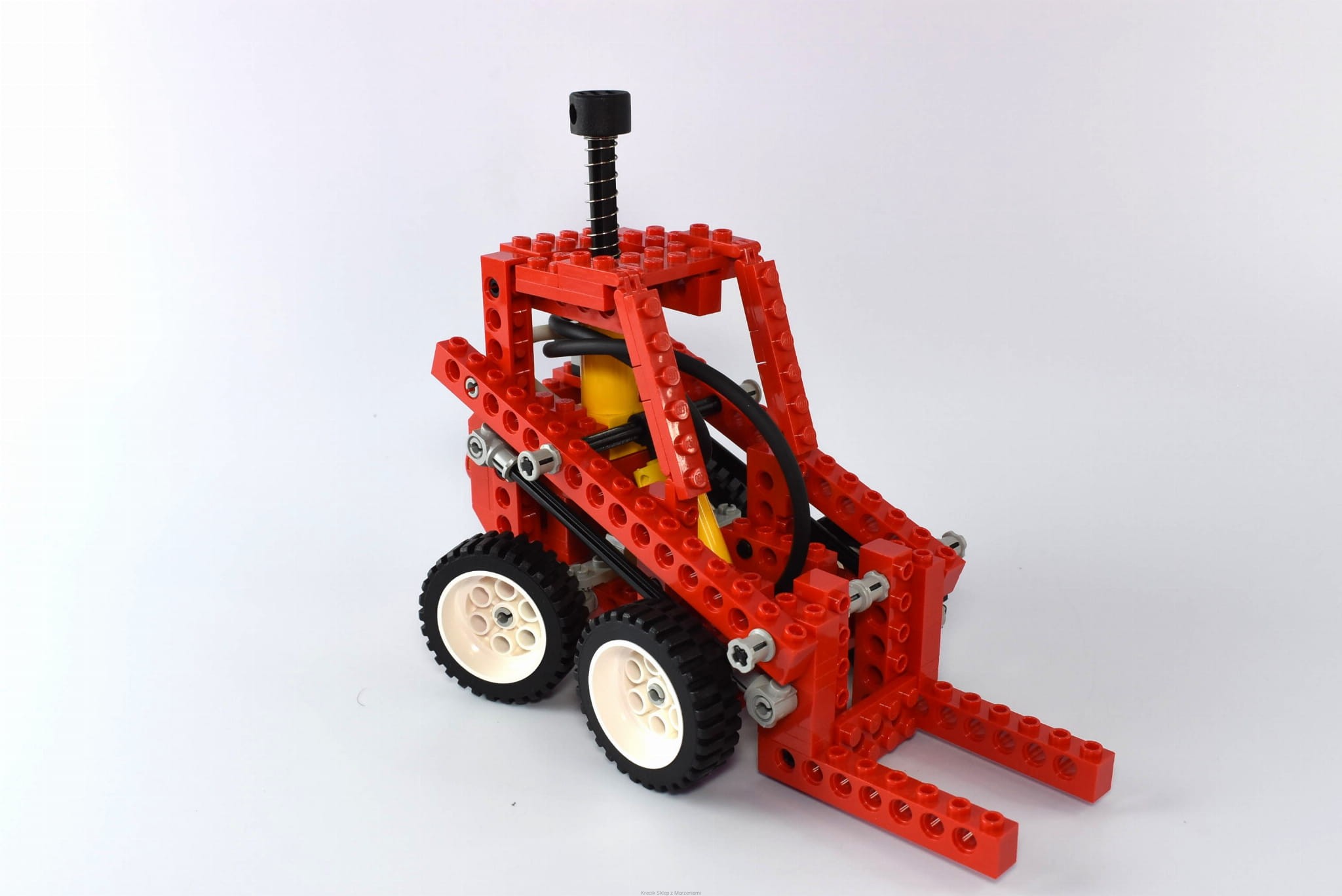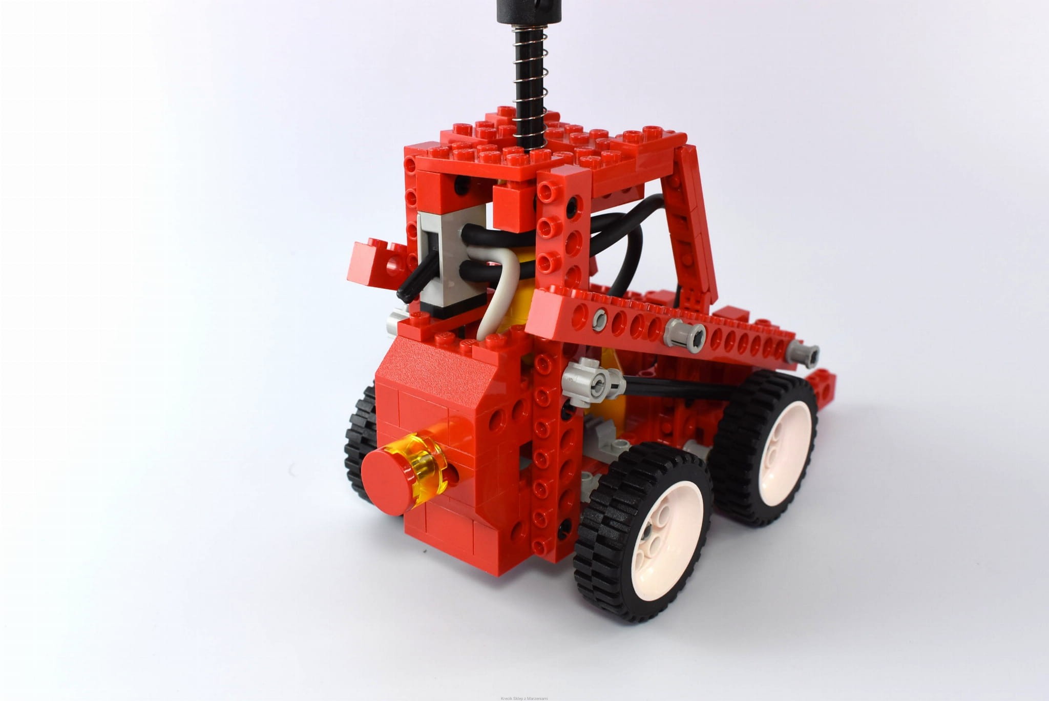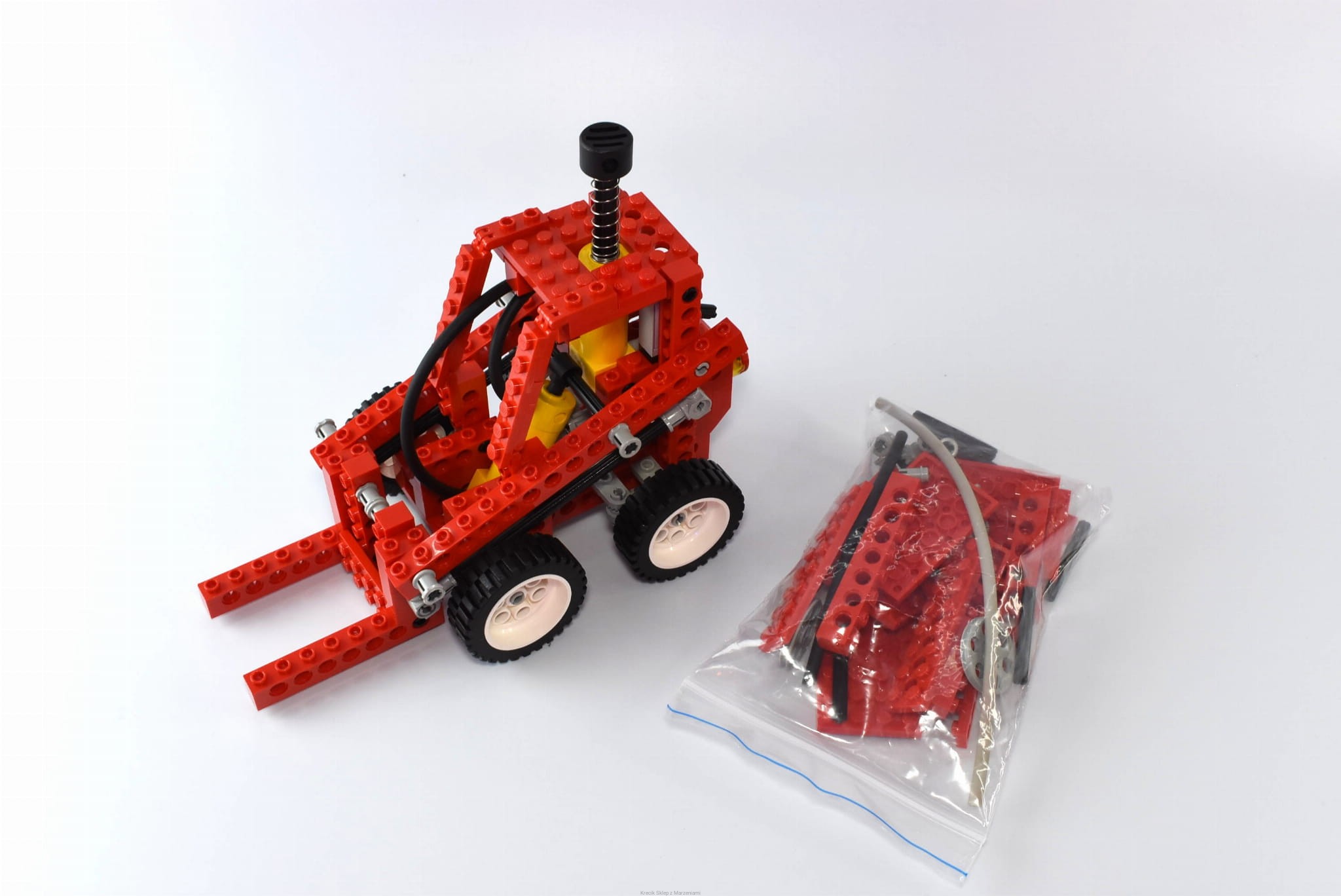 Stan klocków: Używane i bawione, ze śladami ząbków, drobne ryski, mechanizmy pneumatyczne działają - na obu żółtych klockach są niewielkie wgłębienia (jak dotknięte czymś gorącym) - nie jest to widoczne po złożeniu zestawu, są wszystkie gumowe rurki w odpowiednich długościach, zestaw zawiera wszystkie klocki, z których można zbudować modele alternatywne - prezentowany model to tylko jedna z możliwości