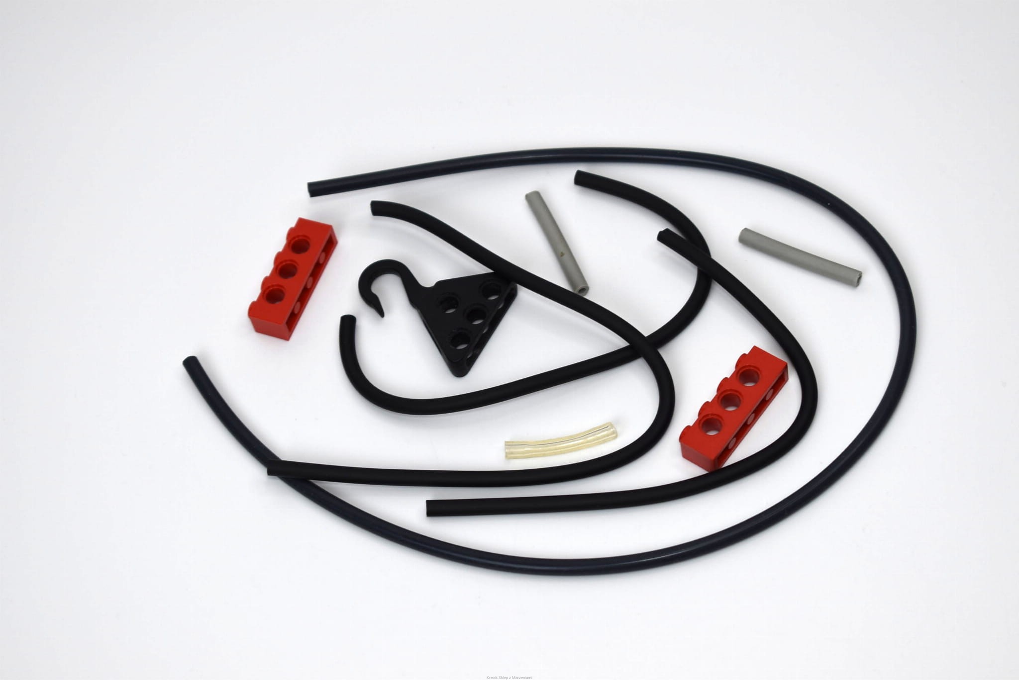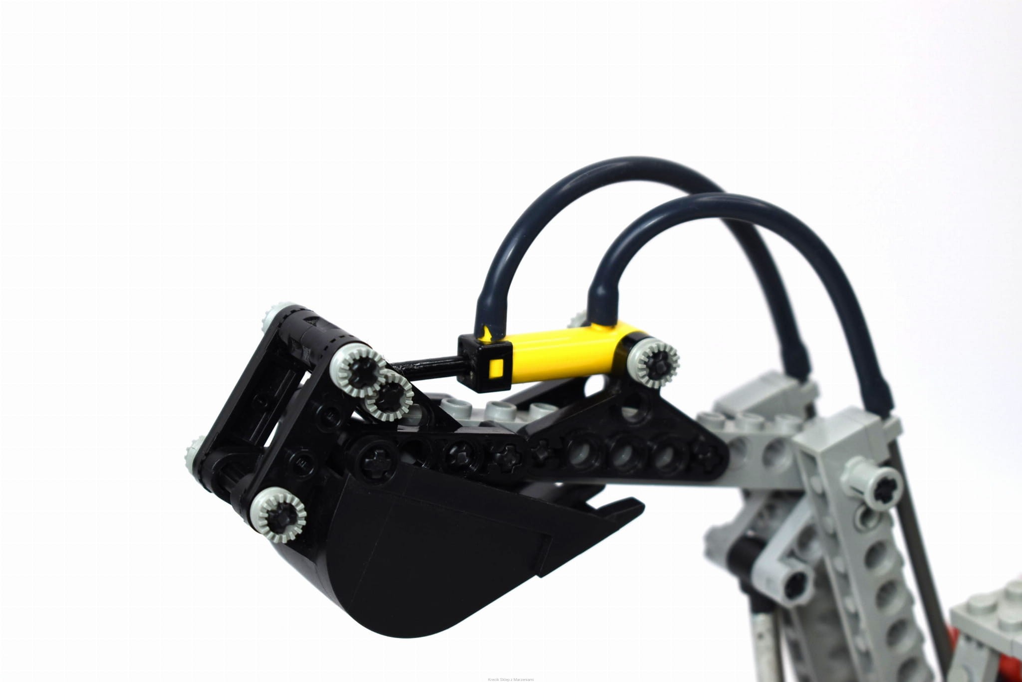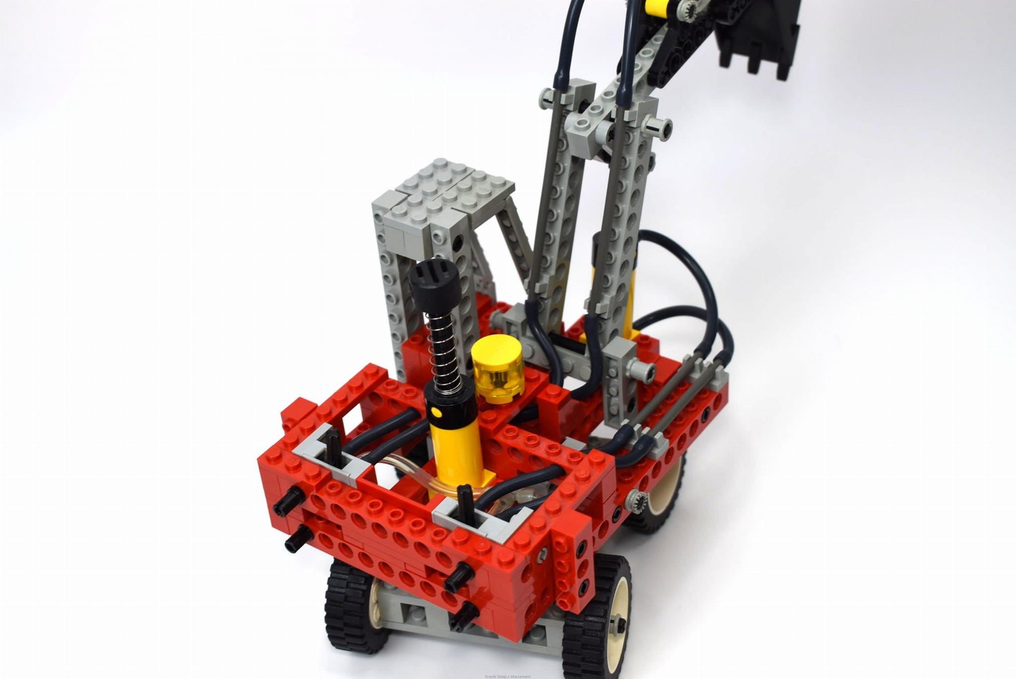 Stan klocków: Używane i bawione, ze śladami ząbków, drobne ryski, białe koła są nieco pożółkłe, zawiera wszystkie gumowe wężyki pneumatyczne (niektóre czarne mają nieco inny odcień - być może ze względu na zużycie gumy lub inne rodzaje materiałów, Bricklink nie rozróżnia więcej niż jednego koloru czarnego; długości sprawdzane z BL; zestaw zawiera wężyki przezroczyste - z alternatywnej wersji; jeden z wężyków jest pęknięty przy łączeniu ale się trzyma); w zestawie są elementy do budowy modelu alternatywnego (dodatkowe wężyki oraz metalowy hak), mechanizmy pneumatyczne sprawne
