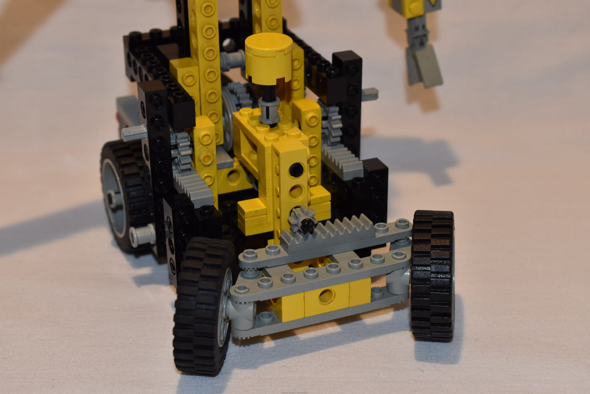 Stan klocków: Używane i bawione, ze śladami ząbków, drobne ryski, mogą być zakurzone, niektóre mechanizmy ciężko chodzą, mogą się zdarzyć mikropęknięcia (uszkodzone klocki staraliśmy się wymieniać), brak dodatkowych klocków nieużywanych do zbudowania robota