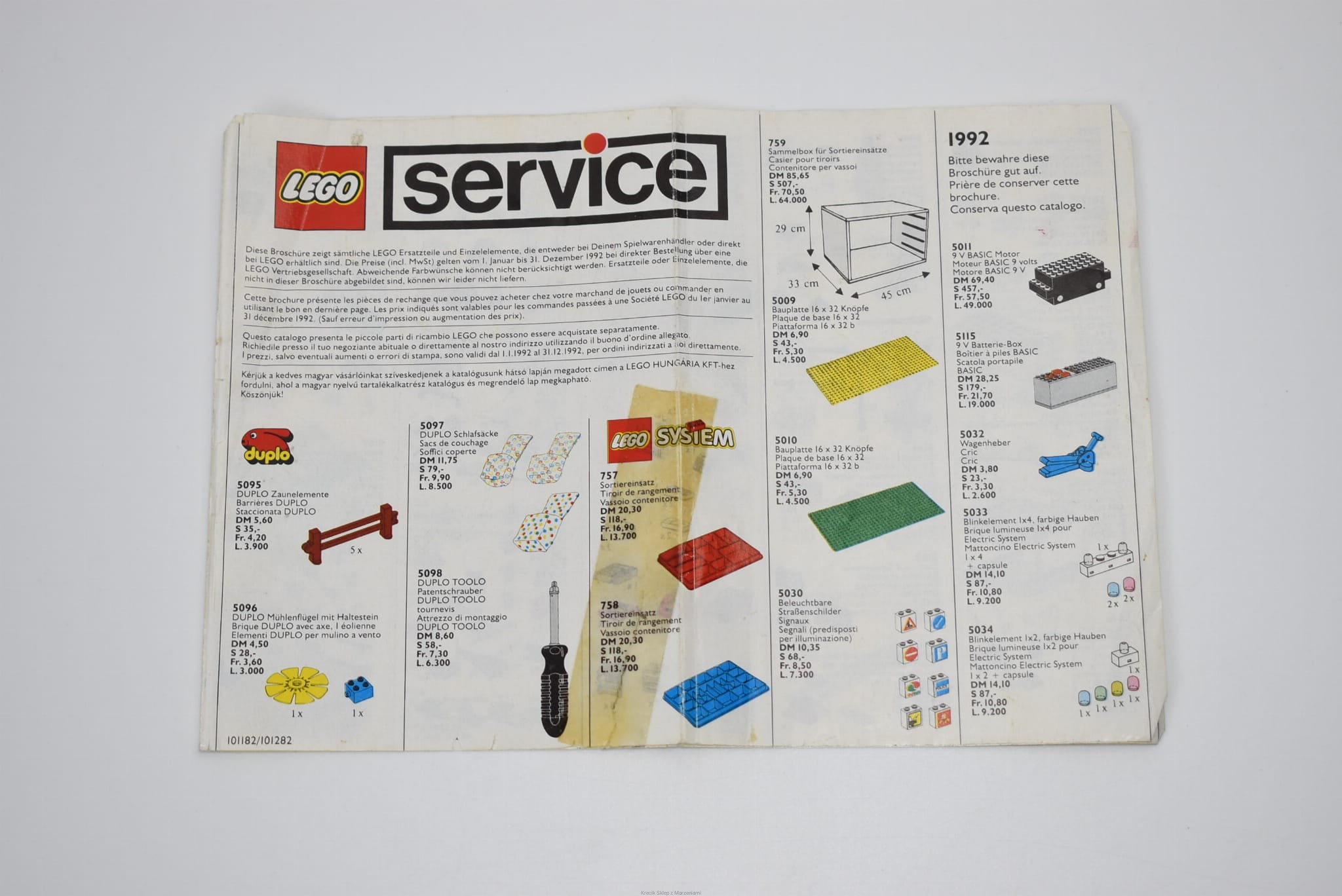 LEGO ulotka serwisowa 1992